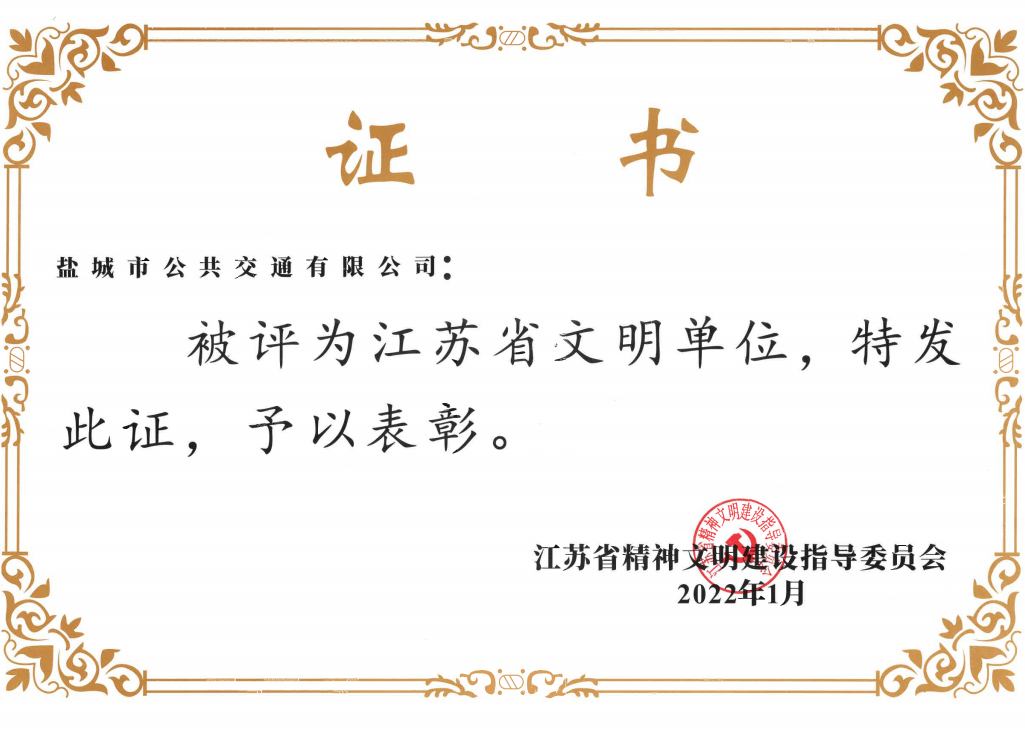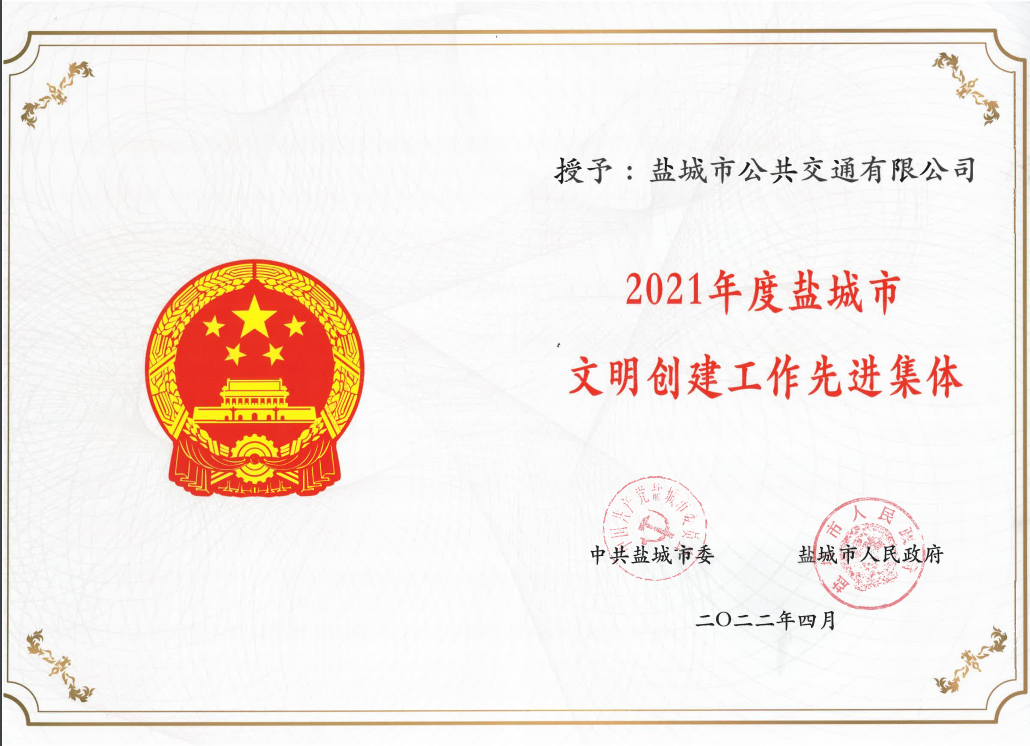 • 2022年4月公司被授予2021年度鹽城市文明創(chuàng)建工作先進集體榮譽稱號